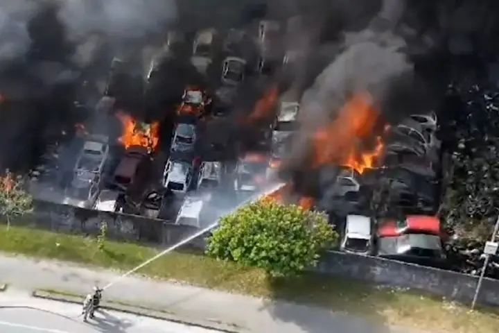 Bombeiros combatem incêndio que atingiu 200 veículos em pátio de delegacia no Paraná