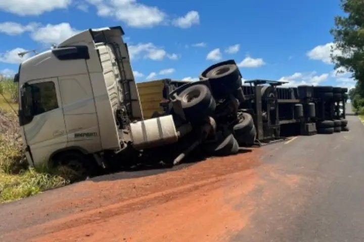 Um tombamento de carreta no fim da manhã desta quinta-feira (4) bloqueou a PR-180, na baixada do trecho conhecido por “baixada dos pés de manga”, entre Goioerê e Moreira Sales. A princípio o veículo estourou um pneu e ficou sobre a pista de rolamento.