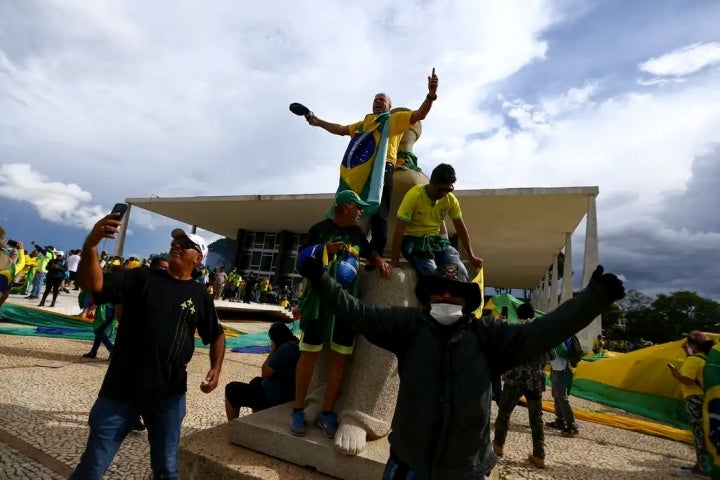A invasão dos prédios públicos no dia 8 de janeiro começou por volta das 15h. Após romperem o cordão de isolamento com poucos policiais militares, os golpistas se dirigiram ao Congresso Nacional e invadiram a sede do Legislativo.