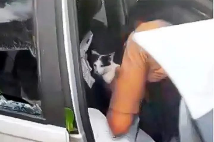 Os termômetros registravam cerca de 30°C quando moradores perceberam que a gata estava trancada dentro de um Fiat Siena. A PM foi acionada, pois em alguns momentos, parecia que o animal estava perdendo a consciência.