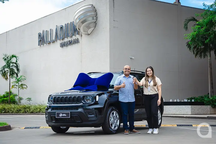 O Shopping Palladium Umuarama realizou a entrega do prêmio de sua programação de Natal o Jeep Renegade Sport T270, na tarde desta terça-feira (9). A ação oferecia a oportunidade aos clientes de concorrerem ao veículo a cada R$ 200 em compras realizadas nas lojas participantes do shopping. O contemplado foi o advogado Bruno Cezar de Oliveira Castro, de São Jorge do Patrocínio.