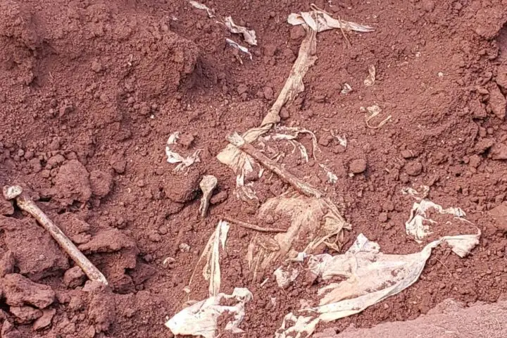 A Polícia Civil de Astorga, a Polícia Científica de Maringá e o Instituto Médico Legal (IML) compareceram ao local. Durante as escavações iniciais, constatou-se a presença de roupas masculinas, femininas e infantis, além dos fragmentos ósseos.