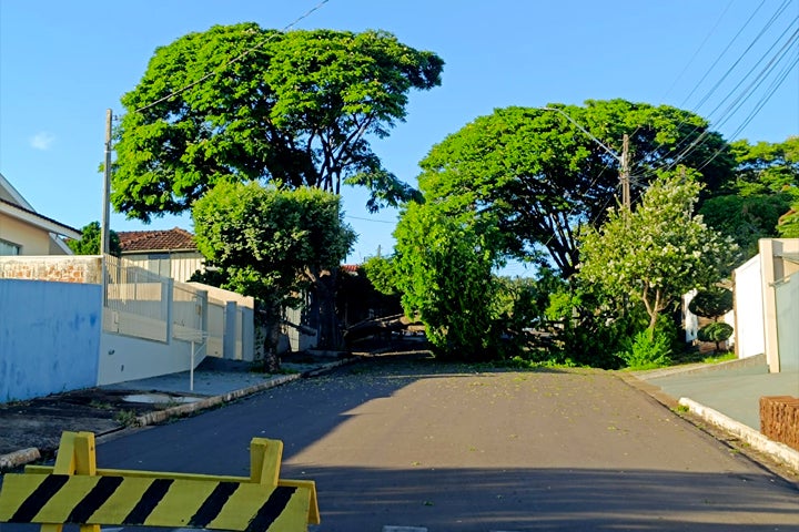 Segundo relatos preliminares, as fortes chuvas acompanhadas de ventos intensos provocaram a queda e desgalhamento de mais de 20 árvores em todo município.