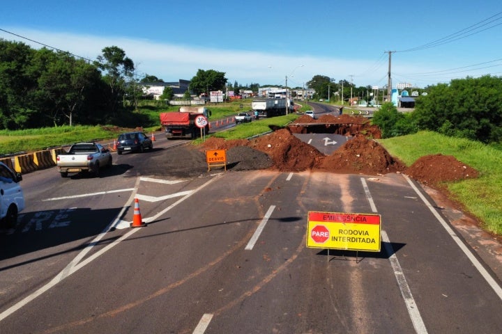 A formação do buraco ocorreu durante uma forte chuva em 23 de dezembro de 2023 e aumentou com o temporal da noite da última terça-feira (9). A pista no sentido Umuarama a Guaíra encontra-se interditada, obrigando os condutores a utilizar um desvio. A cratera causou a destruição total do asfalto nesta via e já afetou parte do canteiro central.