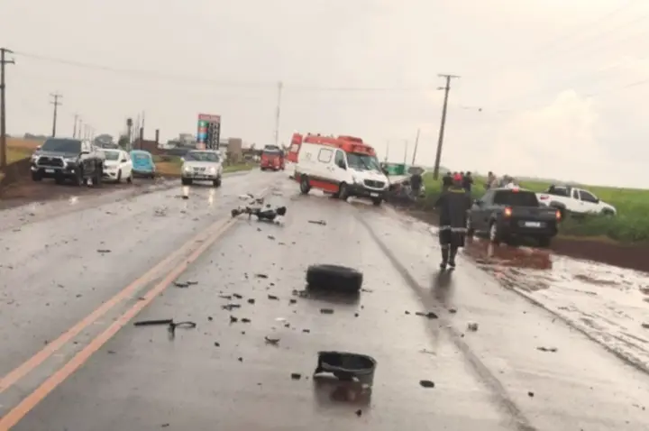 Uma colisão entre dois veículos resultou em quatro pessoas feridas na tarde desta sexta-feira (12) na rodovia PR-239, em Assis Chateaubriand. A situação ocorreu por volta das 14h e chovia no momento. A Polícia Rodoviária Estadual de Assis/Ubiratã atendeu a ocorrência.