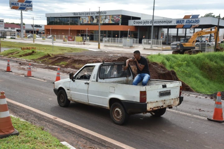 Agora a erosão cresceu ainda mais no lado esquerdo da pista levando mais um pedaço do canteiro central. O lado direito também está passando por erosão, gerando preocupação entre os usuários da rodovia.
