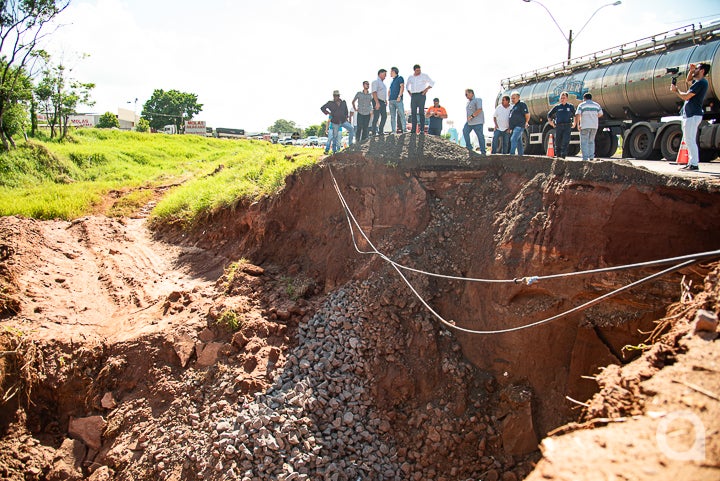 O secretário estadual de Infraestrutura e Logística, Sandro Alex, esteve na tarde desta quinta-feira (18) na rodovia PR-323 em Umuarama, no ponto onde se formaram crateras. A situação fez com que parte da pista fosse interditada, mas o tráfego segue fluindo no sistema ‘pare e siga’.