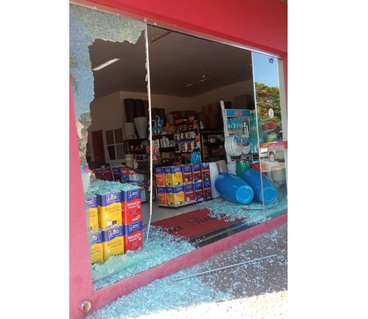 A PM foi acionada via 190 e o solicitante relatou que no local estava um homem totalmente alterado. Os policiais foram até a loja e constataram que o condutor de uma caminhonete Ford/F100 avançou sobre a empresa, quebrando a porta de blindex, dois vasos avaliados em R$ 1.500 cada, além de 4 latas de tintas Suvinil de 20 litros.