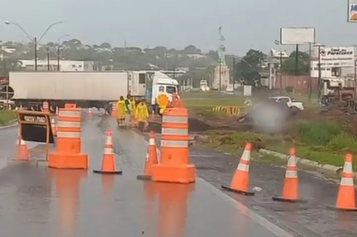 Capelli relatou que a empresa contratada emergencialmente para a obra de reconstrução da rodovia já havia feito obras na sexta-feira (19) que permitiram liberar o trânsito em duas pistas. No entanto, com a chuva deste sábado o trecho foi afetado e o sistema ‘pare e siga’ voltou a ser adotado.