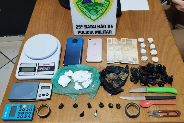 Um homem e uma mulher foram presos pela Polícia Militar (PM) de Umuarama acusados de tráfico de drogas. Com eles os policiais encontraram maconha e cocaína, além de diversos objetos utilizados para fracionar e armazenar os entorpecentes. A prisão ocorreu por volta das 21h de sábado (20), na Zona VI.