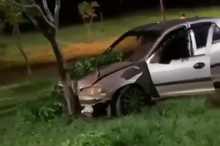 Homem bate carro em árvore e foge a pé após perseguição em Cruzeiro do Oeste