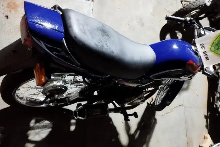 A Polícia Militar (PM) recolheu uma motocicleta Honda CG azul que estava sendo conduzida no início da noite desta terça-feira (23) pelas vias do Centro de Iporã sem a utilização da placa de identificação e com os números de chassi e motor adulterados. O condutor foi preso.