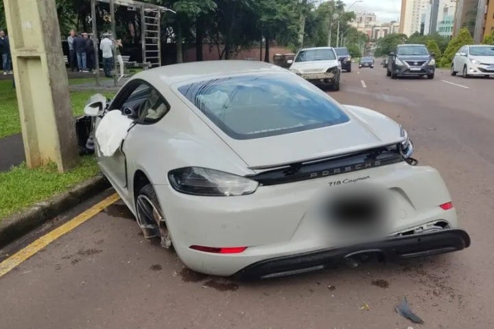 Um motorista teve um tremendo prejuízo após colidir seu Porsche 718 Cayman de cerca de 100 quilômetros rodados contra outro automóvel e dois postes no fim da tarde desta quinta-feira (25), no bairro Mossunguê, em Curitiba. O veículo é avaliado em quase R$ 1 milhão.