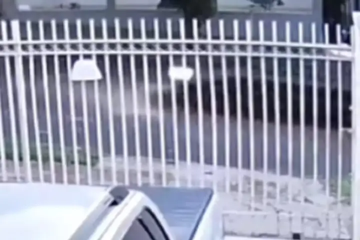 Com capuzes e capacetes, os quatro homens chegaram ao endereço, questionando por uma pessoa que não estava no imóvel. Vinícius Hugo se deitou no chão, enquanto dois moradores saíram da residência ao perceber a situação.