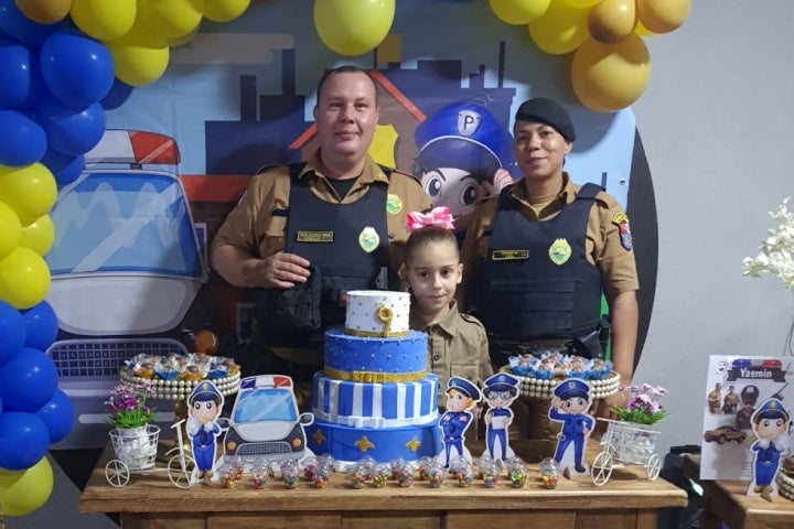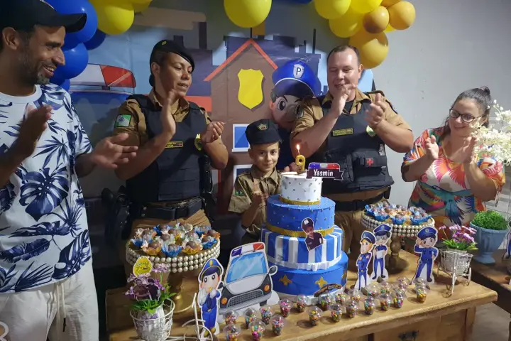 A pequena Yasmin, moradora do Jardim Tokio, em Umuarama, recebeu uma tremenda surpresa na noite da última sexta-feira (26), em seu aniversário de 9 anos. Ela, que é fã da Polícia Militar (PM) e sonha em se tornar uma policial quando crescer, recebeu uma festinha surpresa com a temática da PM e uma visita ilustre de policiais do 25º Batalhão.