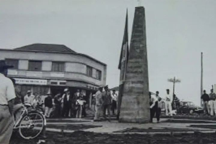 Só os pioneiros e aqueles que eram crianças e adolescentes na época é que, dependendo do grau de memória, viram e podem lembrar daquele monumento desaparecido há mais de meio século, ops!, digo 50 anos!!! Por sorte, tenho essas memoráveis imagens guardadas para poder mostrar agora para quem ainda não havia nascido ou chegado a Umuarama naquele tempo… Para que tenham uma ideia de quão antigas são, observem atentamente que numa das fotos aparece a Avenida Paraná ainda sem asfalto e sem rede de energia elétrica. (ITALO FÁBIO CASCIOLA)