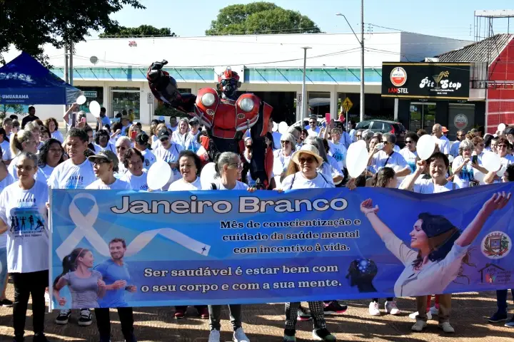 Ser saudável é estar bem com seu o seu corpo e a sua mente. Essa foi a frase que serve de base para as atividades desenvolvidas pela Secretaria Municipal de Saúde para a campanha Janeiro Branco, mês que aborda a importância da conscientização da população sobre os cuidados com o emocional. O ponto alto das ações foi a realização de uma caminhada no sábado (26), que contou com a participação de mais de cem pessoas.