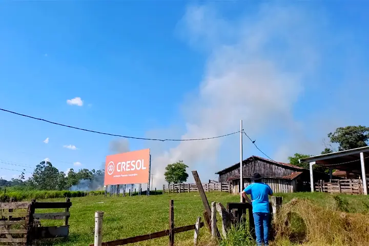 Uma leitora de OBemdito enviou vídeo e fotografia do incêndio. Ela disse que o fogo no pasto está gerando bastante fumaça e o fato pode ocasionar acidentes na rodovia caso os condutores não tenham atenção no trecho.