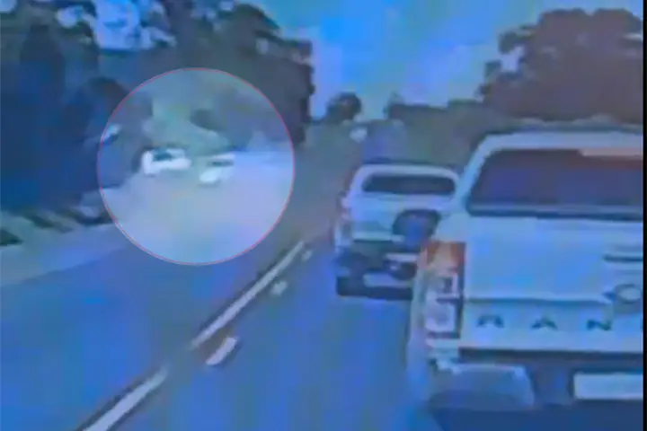 Nas imagens, é possível observar que a caminhonete, que seguia no sentido Umuarama, perde o controle e atinge o Vectra que vinha na direção contrária. Logo em seguida, os dois veículos param, um na pista e o outro em meio à mata.