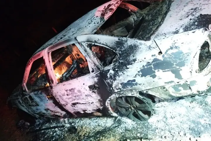 Bandidos rendem e amarram família, roubam armas e ateiam fogo em veículo, em Umuarama