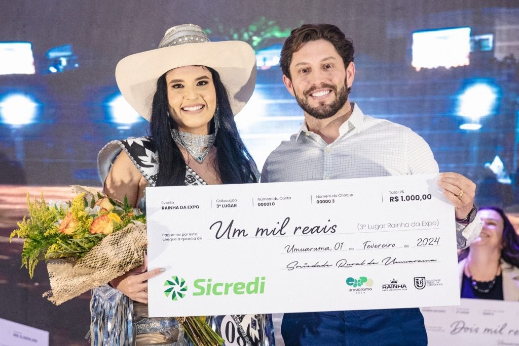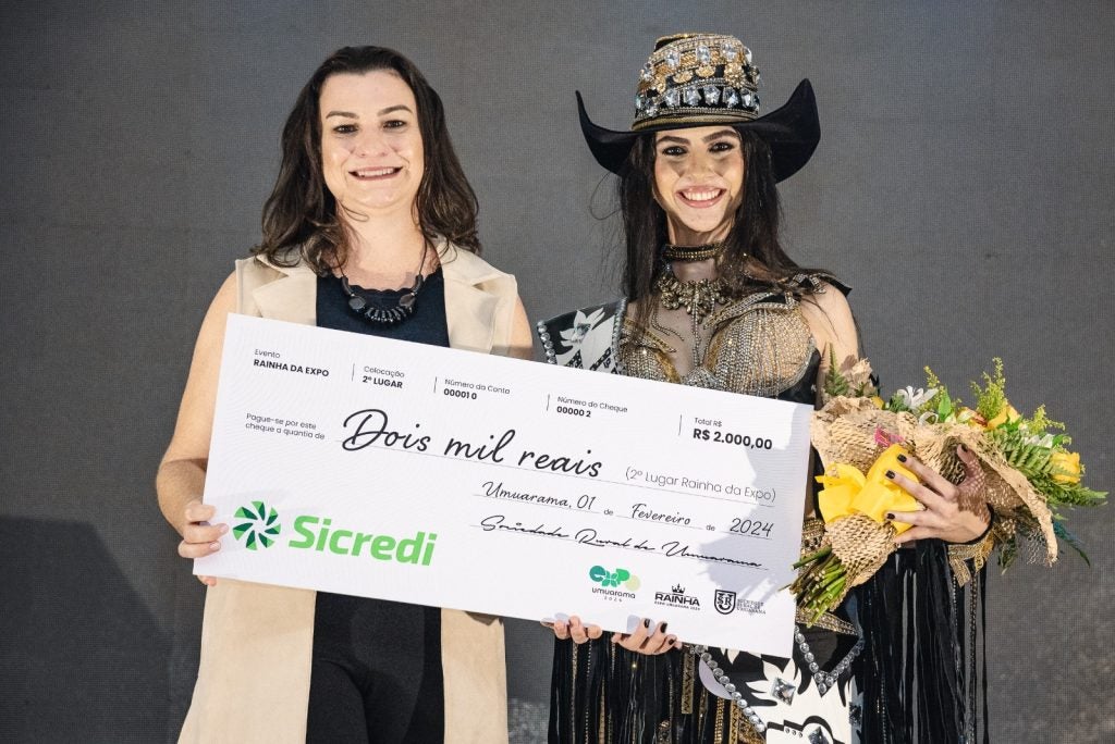 A rainha ganhou, entre outros mimos, como roupas, joias e acessórios, uma caderneta de poupança Sicredi de R$ 3 mil. A primeira e a segunda princesas foram agraciadas com valores de R$ 2 mil e R$ 1 mil, respectivamente. Os prêmios foram entregues por representantes da instituição financeira e pelo presidente da Sociedade Rural Milton Gaiari e os vice-presidentes Junior Bastos e André Bones, acompanhados de suas esposas.