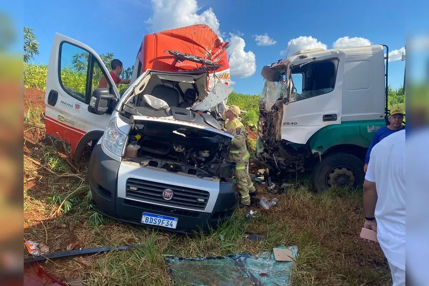 Várias equipes de socorro foram acionadas, incluindo dois helicópteros do serviço aeromédico. A ambulância transportava a grávida para Apucarana quando foi atingida pela carreta.