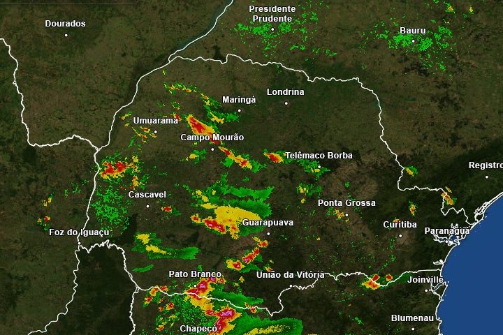 Nesta tarde, a Defesa Civil do Paraná emitiu, por volta das 15h30, alerta para chuvas intensas, raios e vendaval. O alerta tem validade de 6 horas.