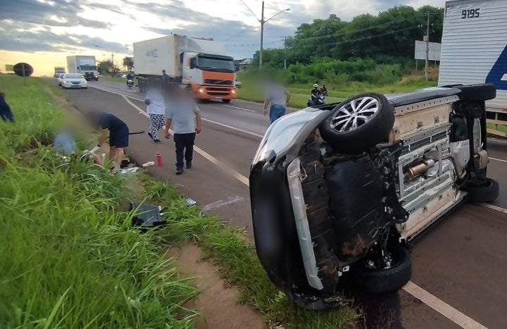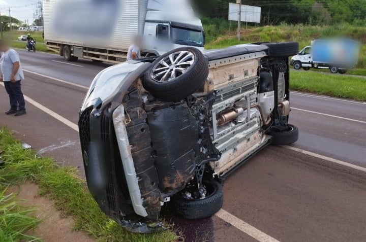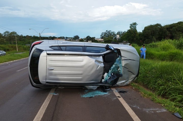 Condutor fica ferido após colisão contra picape e tombamento na PR-323 em Umuarama