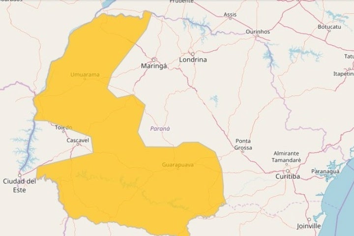 O Inmet (Instituto Nacional de Meteorologia) também emitiu um alerta com grau moderado de perigo para ocorrência de temporais para a região de Umuarama. O aviso é válido até as 10h de sexta-feira (9) e chama a atenção para possibilidade de chuva entre 20 e 30 mm/h ou até 50 mm/dia, ventos intensos (40-60 km/h), e queda de granizo. Há também o baixo risco de corte de energia elétrica, estragos em plantações, queda de galhos de árvores e de alagamentos.