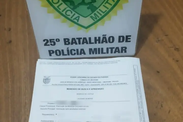 Após o fato, os policiais decidiram registrar um boletim de ocorrência e durante o procedimento pediram os documentos dos abordados. Em uma consulta no sistema, foi constatado um mandado de busca e apreensão em favor do jovem, de 18 anos, expedido pela Vara da Infância e da Juventude de Umuarama devido ao tráfico de drogas.