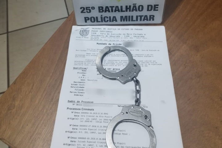 O homem não estava portando nada ilícito, porém uma busca no sistema policial constatou que ele possuía um mandado de prisão vigente expedido pela Vara de Execução em Meio Fechado e Semiaberto de Umuarama, devido a regressão de regime.