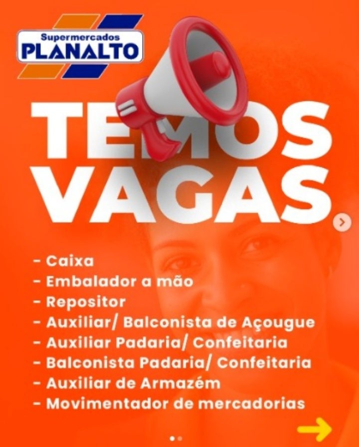 O Supermercado Planalto divulgou através de suas redes sociais que está com vagas abertas para diversos cargos. Interessados podem enviar currículo para curriculo@mercadoplanalto.com.br ou entregá-lo diretamente em uma das lojas.