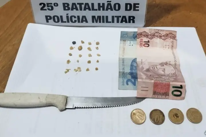 Ao passar pelo local, os militares observaram o indivíduo invadindo uma obra que se encontrava fechada. Após abordá-lo, os policiais encontraram com ele um invólucro branco com 20 pedras de crack fracionadas para venda, além de R$ 12,40 em dinheiro.