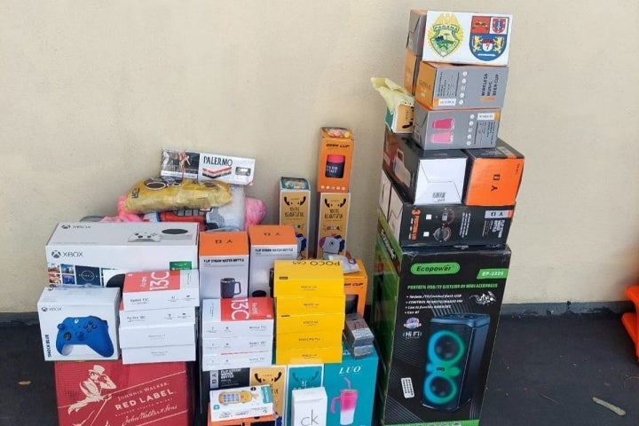 Ao todo, foram apreendidos 20 caixas de cigarros, 14 celulares, 11 canecas térmicas, sete garrafas térmicas, um copo térmico, quatro vapers, um perfume, um videogame, uma caixa de som, 12 garrafas de Whisky, um edredom, um pacote de bombom, uma mamadeira e três brinquedos.