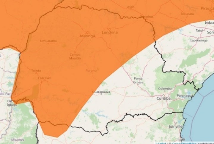 Toda a região Noroeste do Paraná – que compreende Umuarama e municípios próximos – está em alerta laranja, com grau de intensidade moderada, para ocorrência de temporais, de acordo com o Inmet (Instituto Nacional de Meteorologia). O aviso foi emitido por volta das 10h da manhã desta quinta-feira (15) e tem validade de 24 horas, ou seja, até o mesmo horário de sexta (16).