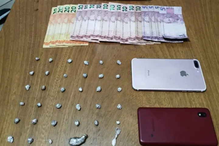 Um homem com suspeita de envolvimento com o tráfico de drogas foi preso na noite desta sexta-feira (16), no Jardim Alvorada, em Umuarama, após a Polícia Militar (PM) receber informações de que ele estaria comercializando drogas em frente a um bar, no bairro. A ação também resultou na apreensão de 33 pedras de crack, 1 bucha de cocaína, 1 porção de maconha, R$ 200 em notas diversas, além do encaminhamento de um jovem, de 16 anos, que teria adquirido maconha com o autor.