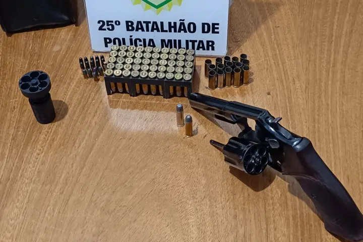 Os policiais fizeram contato com as partes e, dentro da casa, encontraram um revólver Taurus calibre .38, além de 52 munições intactas e 15 deflagradas do mesmo calibre da arma, além de 16 munições intactas de calibre .22.