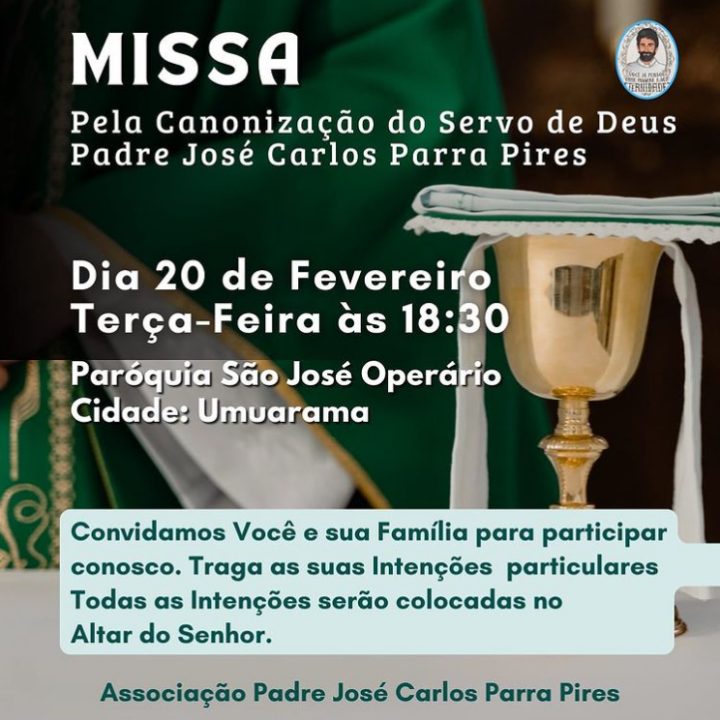 A Paróquia São José Operário de Umuarama promoverá uma missa em homenagem à canonização do Padre José Carlos Parra Pires nesta terça-feira (20), às 18h30. Esta cerimônia dedicada à alma e à canonização do religioso se tornou uma tradição entre os fiéis.