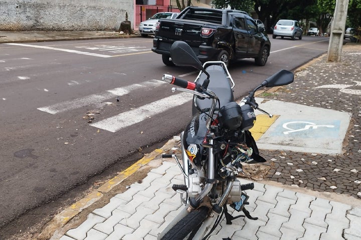 A PM foi informou que foi acionada para registrar um acidente do tipo abalroamento transversal envolvendo um automóvel e uma motocicleta. A Fiat/Strada Volcano era conduzida por uma mulher de 31 anos e tinha como passageiro um homem de 63 anos. Nenhum dos dois se feriu.