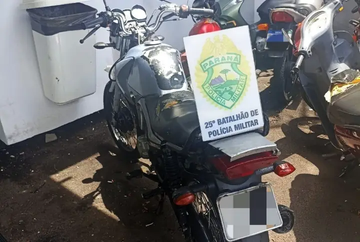 A Polícia Militar (PM) de Umuarama apreendeu uma moto e prendeu um homem pelo crime de adulteração de sinal identificador de veículo automotor. A situação aconteceu por volta das 12h40 desta terça-feira (20) no Jardim Petrópolis.