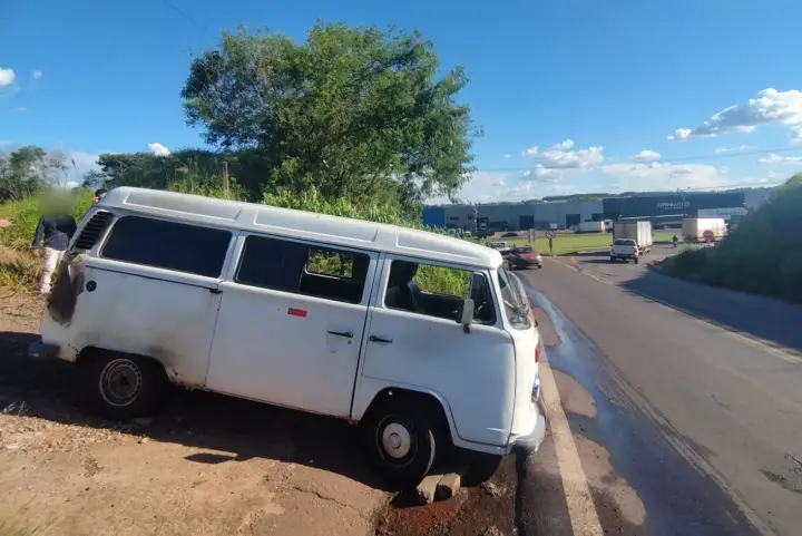 A Kombi de cor branca pertence a uma empresa do ramo de eventos. O condutor informou que tinha acabado de abastecer o veículo no Posto Carretão e daria a volta do por trás do parque de exposições para ir ao Centro de Eventos Alexandre Ceranto.