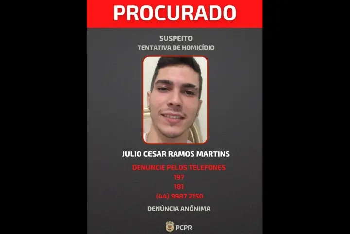 Júlio César Ramos Martins está sendo procurado pela Polícia Civil de Iporã, que inclusive divulgou o cartaz de ‘procura-se’ no início da noite desta quinta-feira (22). No período da tarde a equipe da 15ª Delegacia Regional de Iporã cumpriu mandado de prisão preventiva e de busca e apreensão na residência do acusado de ser autor da tentativa de homicídio qualificado.