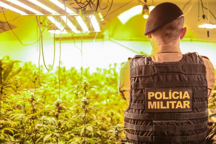 A Polícia Militar foi acionada e foi até o endereço. Durante a abordagem, a equipe deteve um homem de 38 anos com uma bolsa preta contendo haxixe. No local foram encontrados os pés de maconha, além de uma estrutura com estufas, reatores e lâmpadas próprias para o cultivo da planta. Também foram encontrados materiais utilizados na confecção e venda de drogas, como prensas, sedas, produtos químicos, fertilizantes, embalagens e cartões de contato de uma marca.