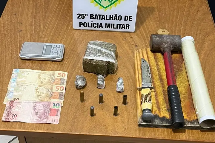 Segundo a Polícia Militar (PM), uma equipe estava realizando um patrulhamento pela região quando flagrou um jovem em frente a uma residência agindo de maneira suspeita. Ao perceber a presença da viatura, o rapaz demonstrou nervosismo e acompanhou a equipe à distância.