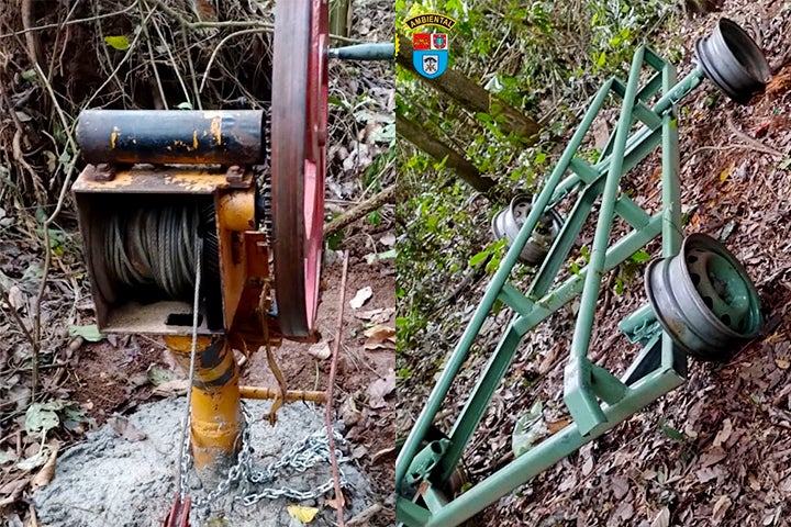 Além disso, os policiais encontraram uma estrutura em construção, possivelmente destinada a atividades criminosas relacionadas ao tráfico e contrabando. Essa estrutura incluía trilhos e uma catraca para retirar cargas do rio, além de diversas ferramentas utilizadas na construção.