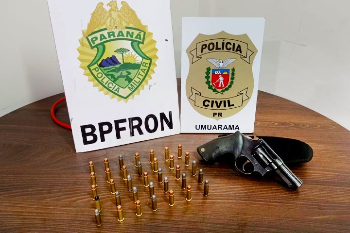 A Polícia Civil de Umuarama em ação conjunta com o Batalhão Policial de Fronteira (BPFron) apreenderam uma arma de fogo e várias munições nesta manhã de terça-feira (27), durante o cumprimento de dois mandados de busca e apreensão. Os mandados foram cumpridos no bairro Parque Industrial e na Estrada Jaborandi, ambos em Umuarama.