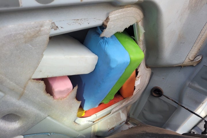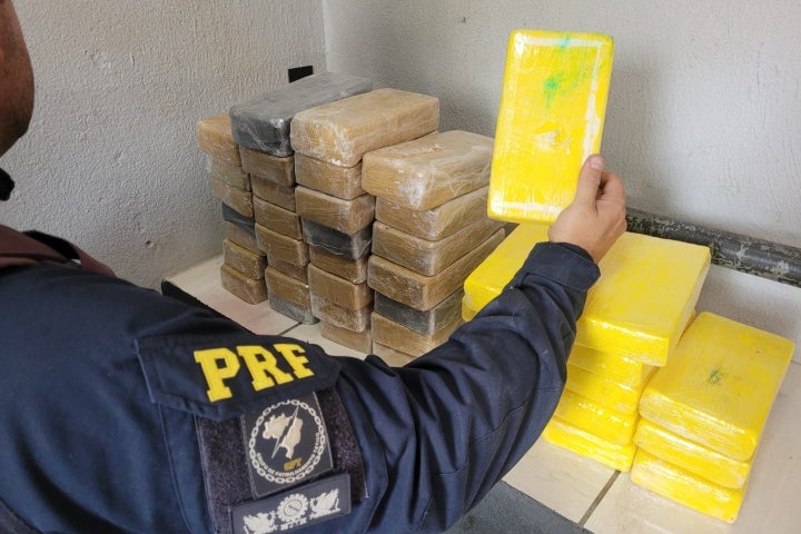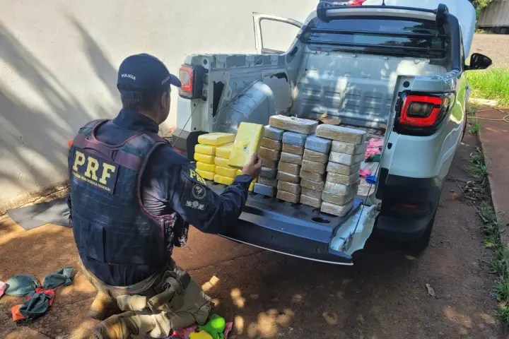 A droga estava sendo transportada em um Fiat Strada de cor branca. Ao vistoriar o veículo, os policiais encontraram nas laterais 44 tabletes de cocaína e pasta base, que totalizaram 45 quilos da droga.