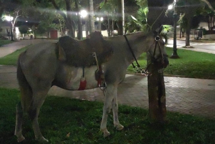 A Guarda Municipal (GM) e a Saau (Sociedade de Amparo aos Animais de Umuarama) resgataram, na noite desta quarta-feira (28), um cavalo branco que havia sido deixado amarrado na praça do Alto São Francisco, em Umuarama. De acordo com as informações, o equino estava sem comida ou água.