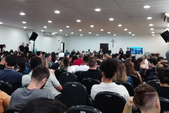 O depoimento de Jean Michel de Souza Barros estava cercado de grande expectativa. Os trabalhos deste sábado (2) começaram às 8h e a sala do Tribunal do Júri ficou lotada de pessoas que queriam acompanhar o julgamento do acusado de cometer triplo homicídio.