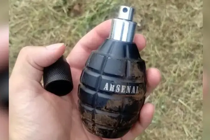 Perfume em formato de granada mobiliza polícia; objeto estava em uma área de recicláveis